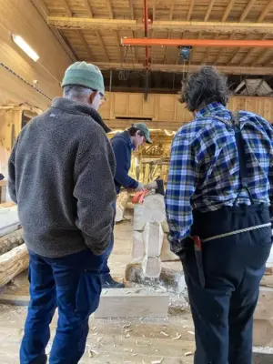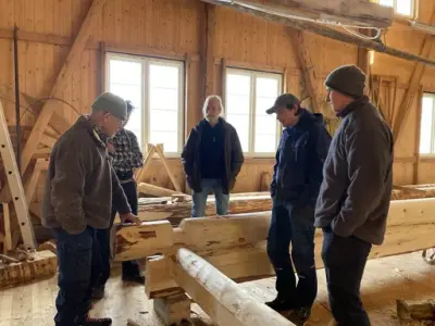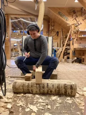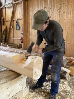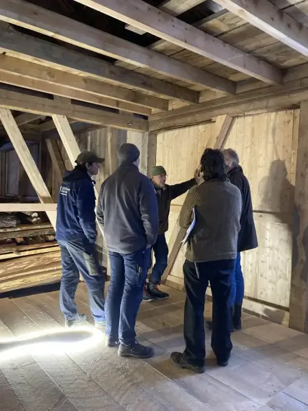 Materialval; det er viktig å kunne blinke og felle tre til riktig føremål i tradisjonsbygg. Næmingane har gjort rede for val av material i bygget. Vidare har dei analysert kvalitet og alder på tre frå foto, og kva dei ville bruka dei til. Skal det vere syll, bordved, stav eller anna?